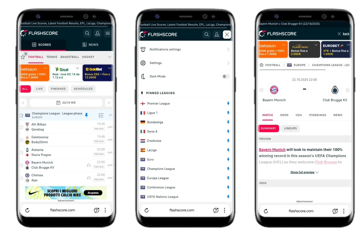 - iOS: Search "FlashScore" in App Store