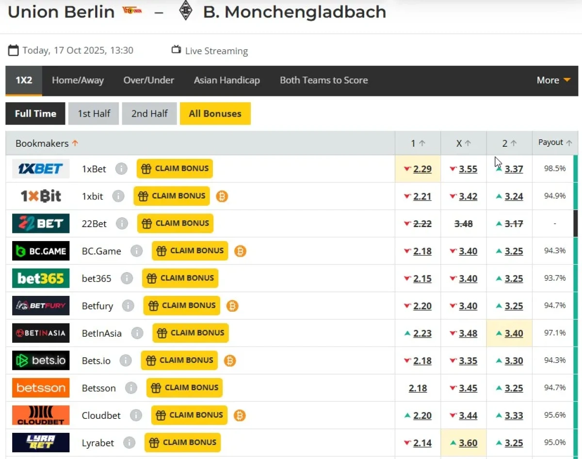 OddsPortal provides comprehensive football odds comparison for leagues worldwide, from the Premier League, La Liga, Serie A, and Bundesliga to smaller regional competitions. Each match page includes:
